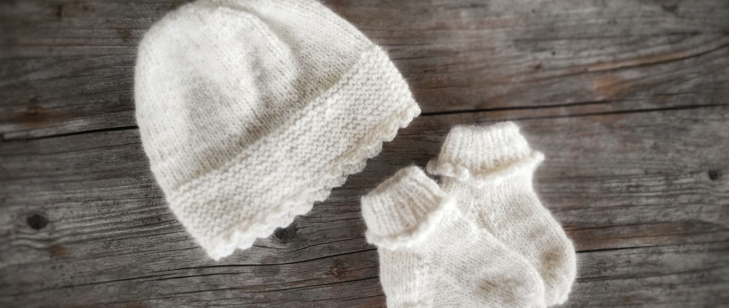 Dieses Babyset besteht aus einer Mütze und einem Paar Söckchen. Liebevoll handgestrickt aus der Wolle unserer Alpakas.